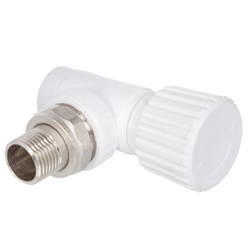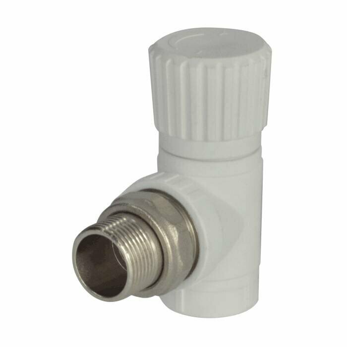 Полипропиленовый корпус обеспечивает отличную стойкость к воздействию высоких температур и давления, что делает вентиль долговечным и устойчивым к коррозии. Белый цвет гармонично впишется в любой интерьер, придавая аккуратный и современный вид радиатору. Угловая конструкция позволяет рационально использовать пространство и облегчает монтаж даже в труднодоступных местах. Диаметр подключения 25 мм и стандартная резьба 3/4" обеспечивают совместимость с большинством современных систем отопления.