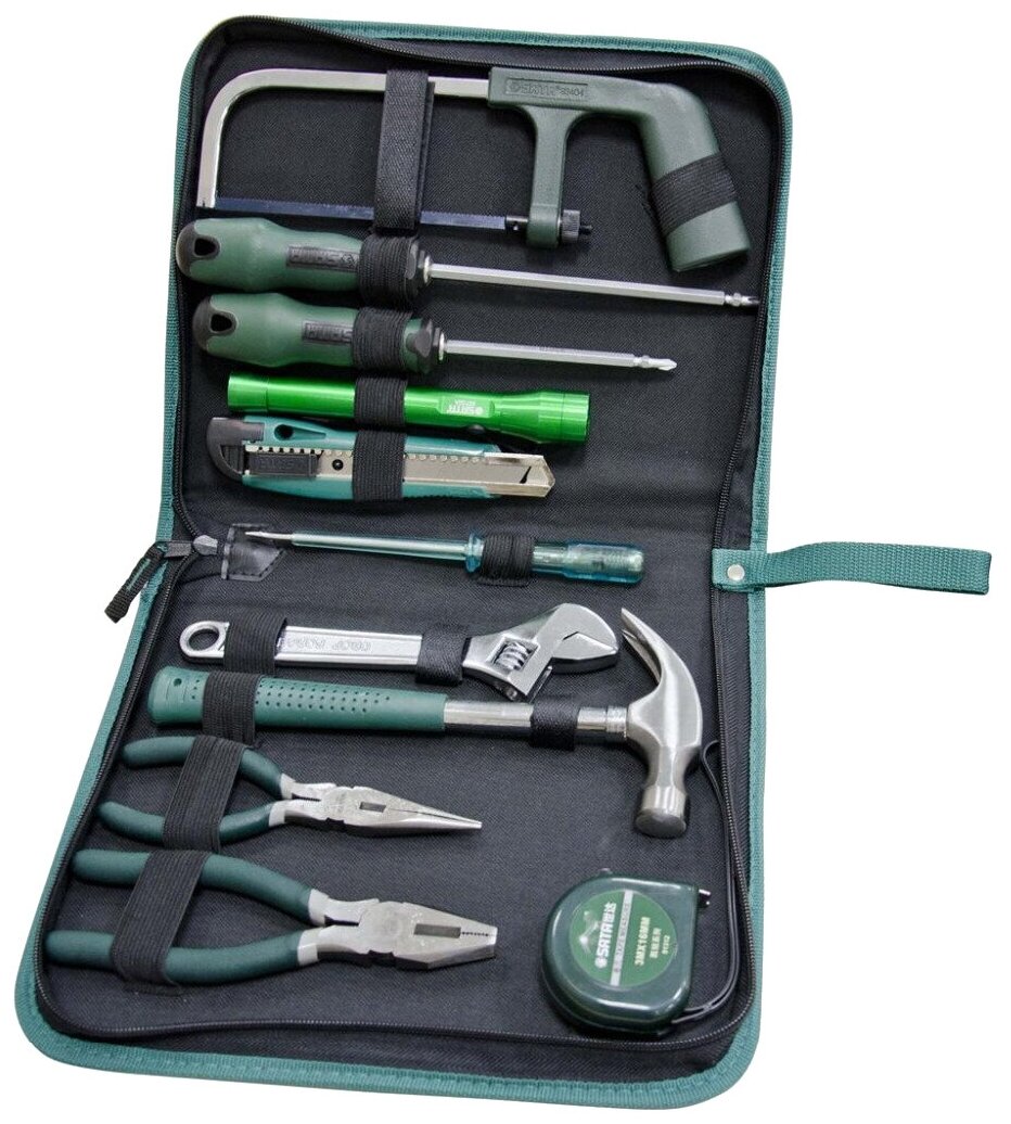 | Комплектация | плоскогубцы - 1 шт; отвертка - 3 шт; молоток-гвоздодер - 1 шт; ключ разводной - 1 шт; рулетка - 1 шт; нож - 1 шт; фонарь - 1 шт; ножовка - 1 шт; тонкогубцы - 1 шт |