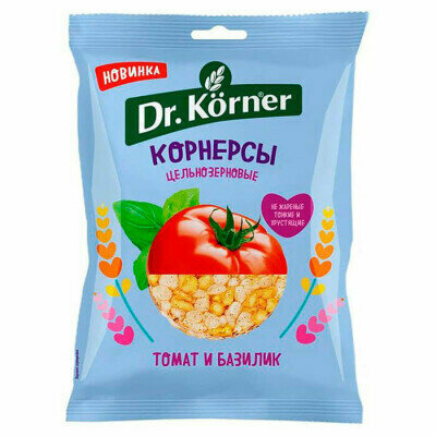 Чипсы цельнозерновые Корнерсы Dr. Korner "Томат и базилик" 50гр (158201)