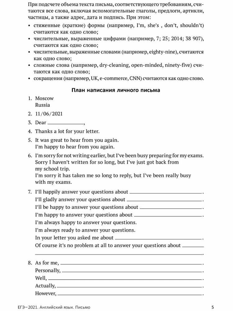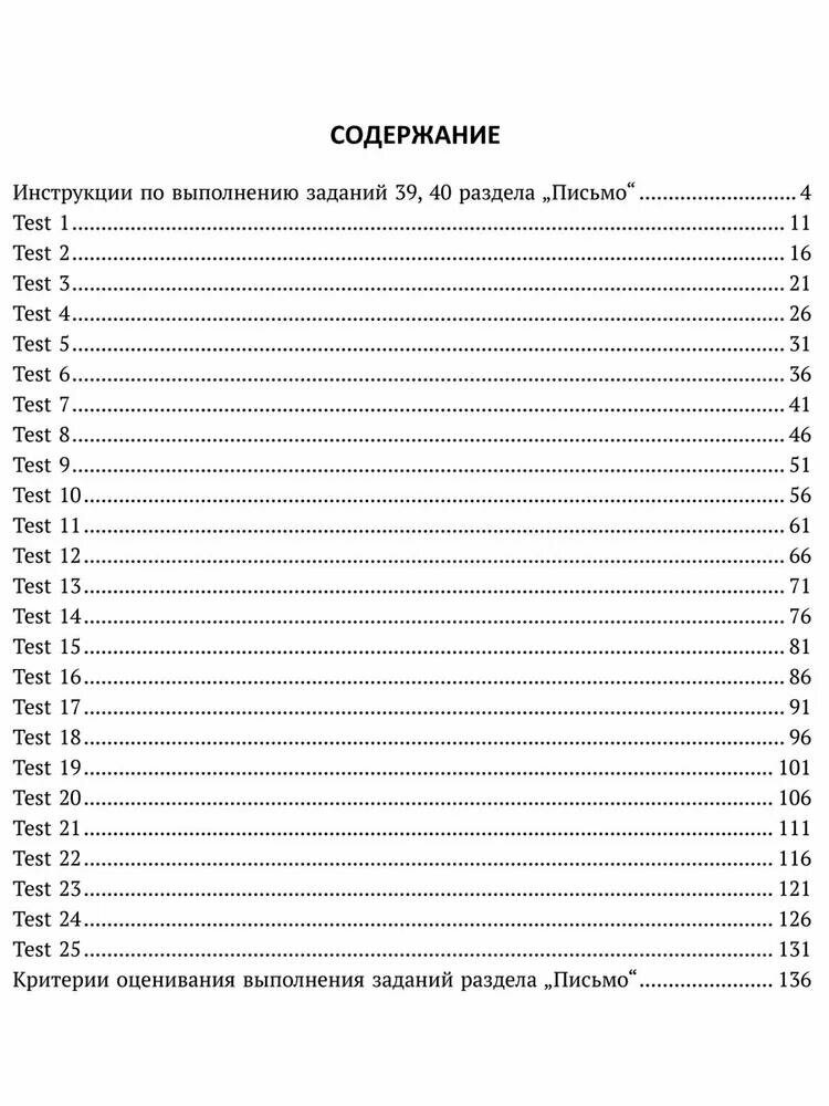 Учебное пособие содержит 25 тренировочных тестов, которые также являются демонстрационными, образцы выполнения заданий 39 и 40, инструкции по выполнению заданий, подробные планы написания и схемы оформления личного письма и сочинения, а также критерии оценивания выполнения заданий 39 и 40 раздела „Письмо“.