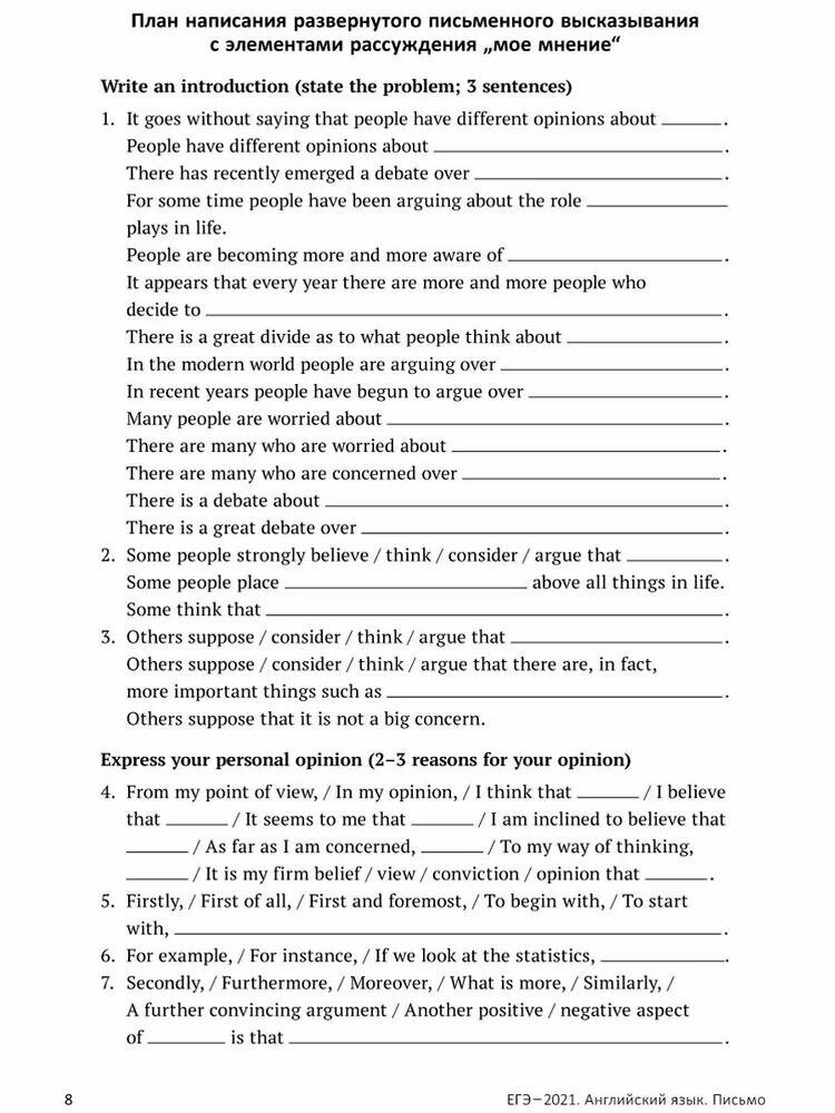 Сборник будет полезен учащимся старших классов для самостоятельной подготовки к выполнению заданий 39, 40 раздела „Письмо“ ЕГЭ по английскому языку. Также учителя могут использовать данные пособия для проведения индивидуальных и групповых занятий в качестве основного и дополнительного учебного пособия, а также для организации контроля результатов освоения материала школьниками.