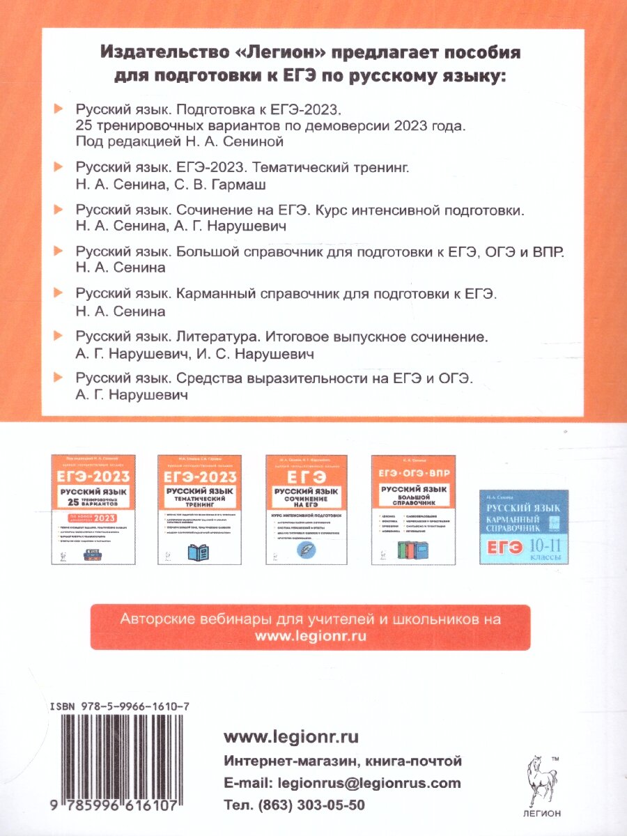 На сегодняшний день товар «Книга: ЕГЭ Русский язык. Литература. 11 класс. Итоговое выпускное сочинение (Нарушевич Андрей Георгиевич, Нарушевич Ирина Станиславовна); Легион, 2020» можно купить с кешбеком в 1 магазине: Яндекс.Маркет