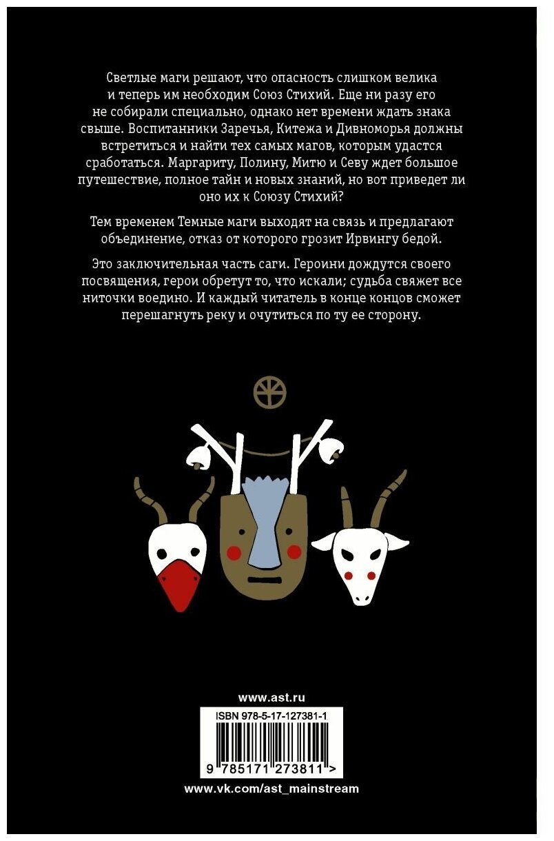 Светлые маги решают, что опасность слишком велика и теперь им необходим Союз Стихий. Еще ни разу его не собирали специально, однако нет времени ждать знака свыше. Воспитанники Заречья, Китежа и Дивноморья должны встретиться и найти тех самых магов, которым удастся сработаться. Маргариту, Полину, Митю, Севу ждет большое путешествие, полное тайн и новых знаний, но вот приведет ли оно их к Союзу Стихий?