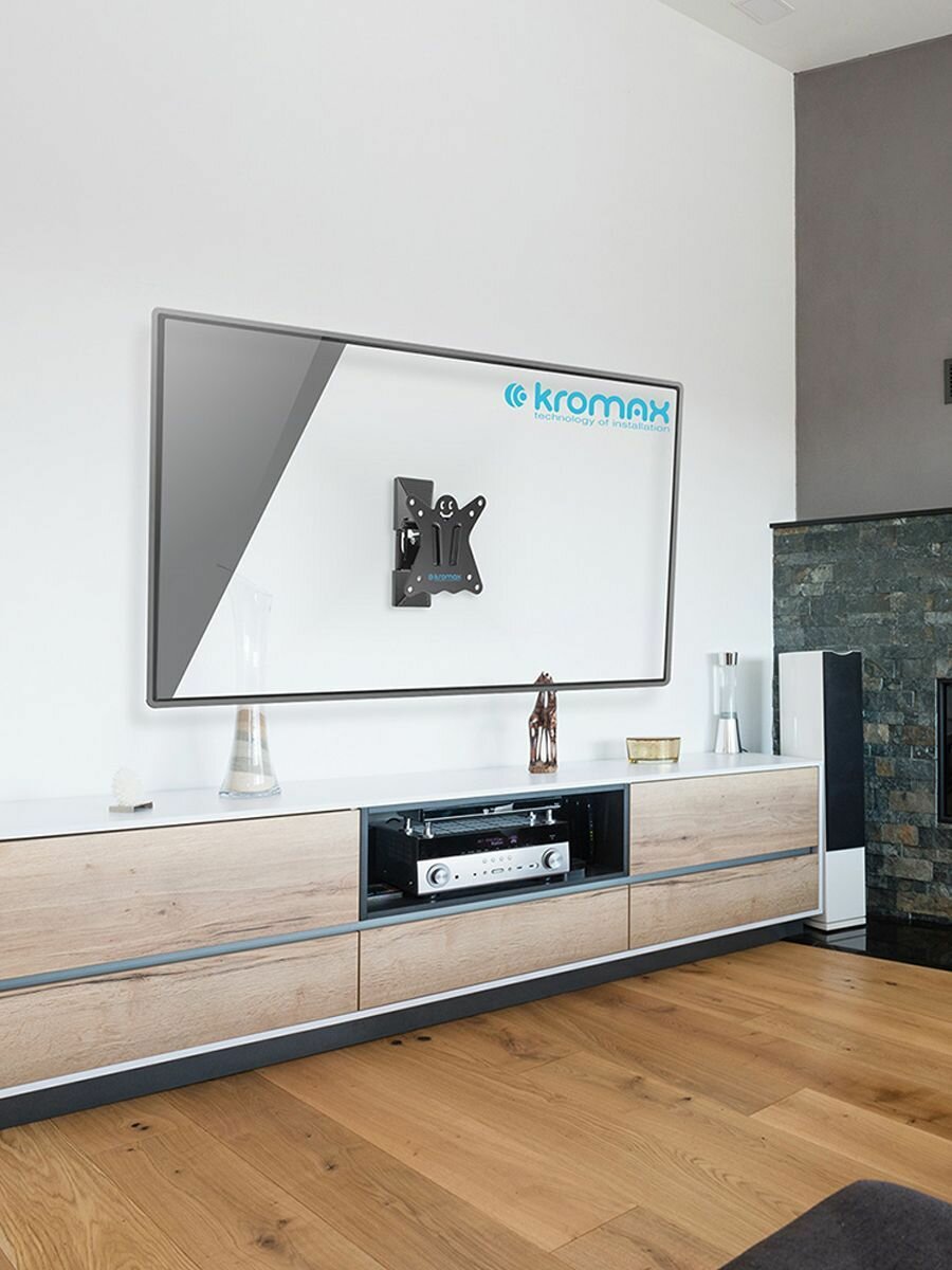 Кронштейн KROMAX позволяет выбрать оптимальное положение телевизора для просмотра изображения из самых разных точек комнаты благодаря применению поворотно-наклонной конструкции. В нем также предусмотрена возможность вращения относительно горизонтальной плоскости и выбора расстояния до стены. Кронштейн изготовлен из высокопрочной стали и снабжен кабель-каналом для скрытого прокладывания проводов.