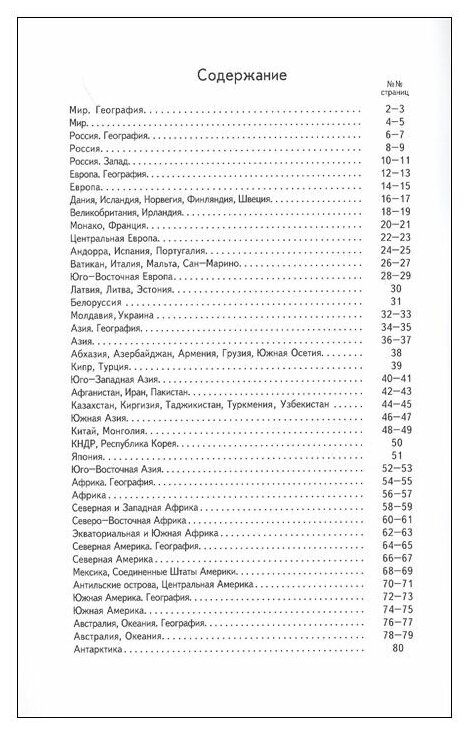Атлас объёмом в 80 страниц снабжает читателя информацией о современном политическом устройстве мира, всех его континентов, а также отдельных регионов. Атлас, принадлежа к категории политико-административных атласов мира начального уровня, выгодно отличается от других малоформатных картографических произведений наличием в его составе физико-географического раздела. Несомненным достоинством атласа является включение крупномасштабных карт-врезок небольших по площади государств. Тем самым значительно повышается широта информации об отдельно взятых странах, устанавливается некое «равенство» участников современного мироустройства.
