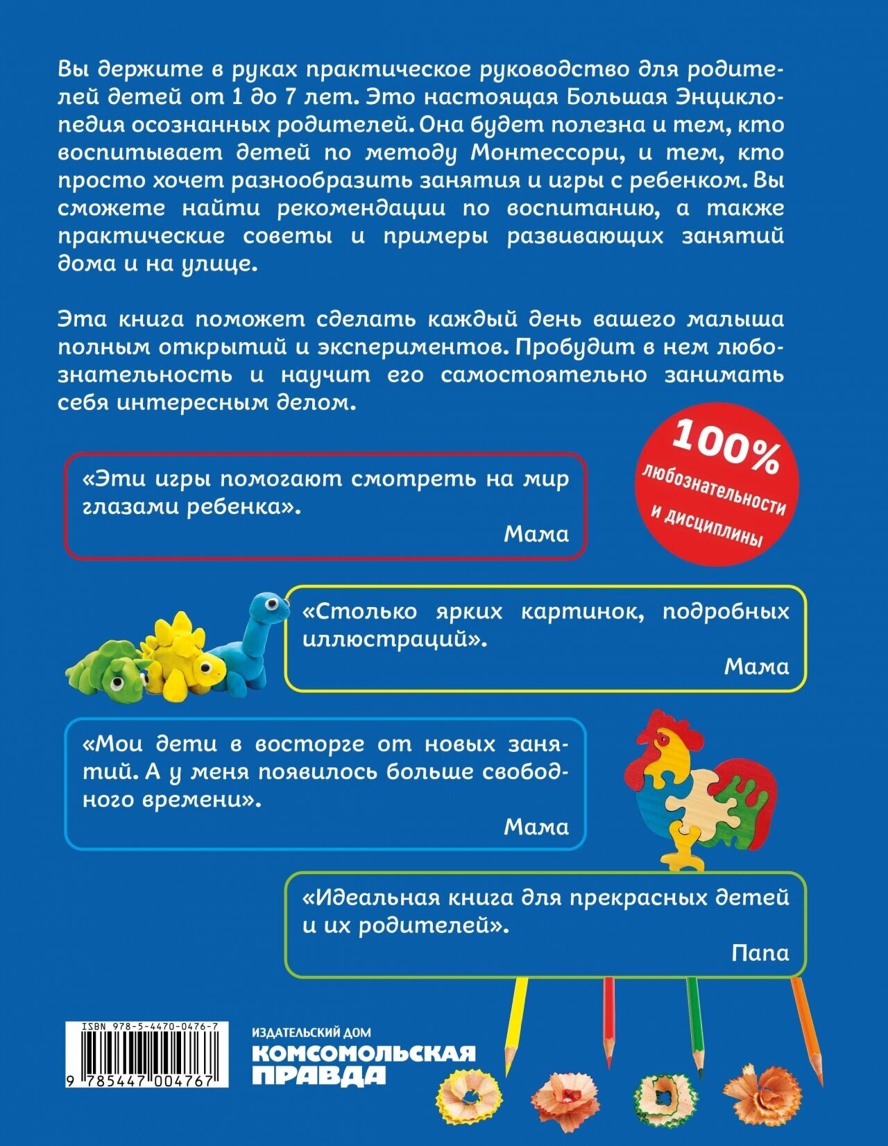 Вы держите в руках практическое руководство для родителей детей от 1 до 7 лет. Это настоящая Большая Энциклопедия осознанных родителей. Она будет полезна и тем, кто воспитывает детей по методу Монтессори, и тем, кто просто хочет разнообразить занятия и игры с ребенком. Вы сможете найти рекомендации по воспитанию, а также практические советы и примеры развивающих занятий дома и на улице