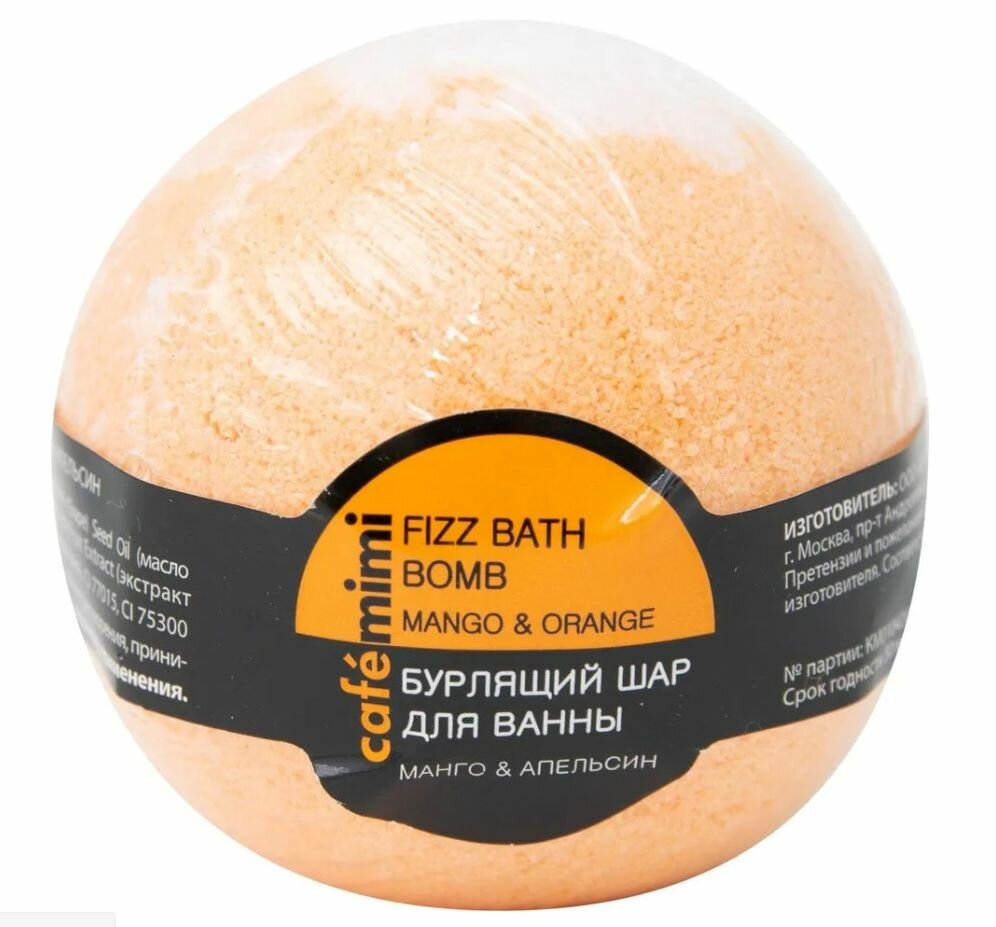 | Полное наименование | Cafe mimi Бурлящий шар для ванны Манго и апельсин 120 г |