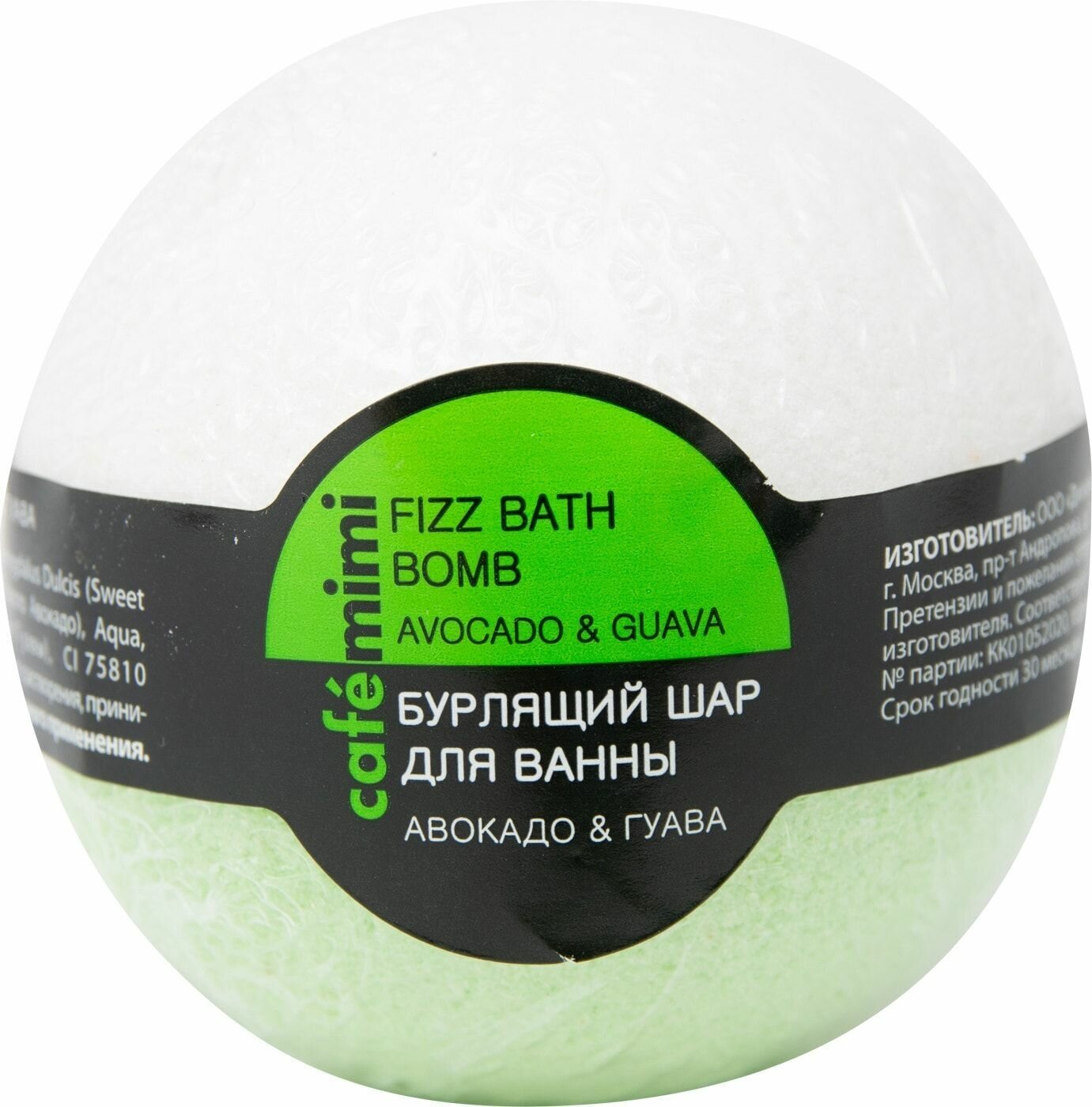 | Полное наименование | Cafe mimi Бурлящий шар для ванны Авокадо и гуава 120 г |