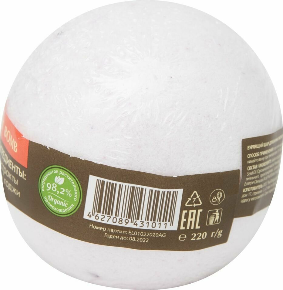 | Полное наименование | EO LABORATORIE Бурлящий шар для ванны Ягоды асаи и годжи 220 г |