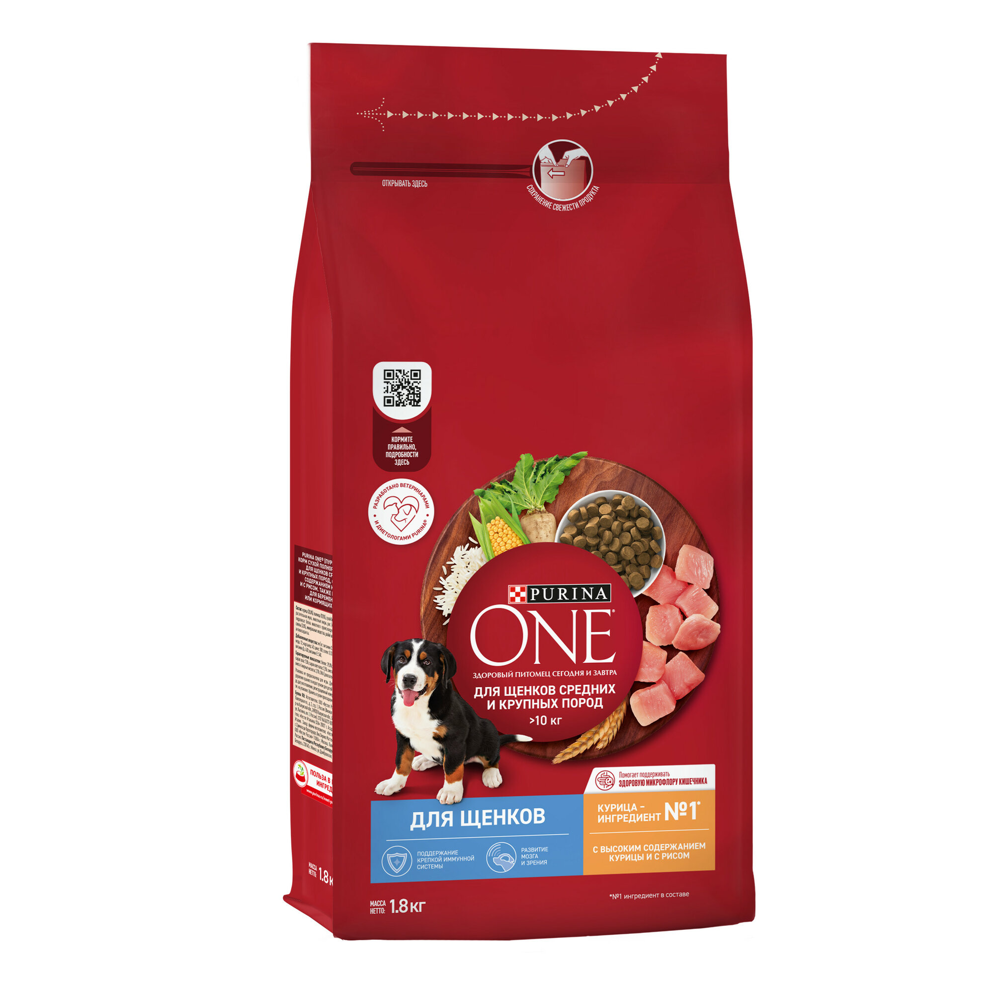 Корм Purina ONE® (Пурина Уан) для средних и крупных пород > 10 кг — это высококачественное питание, специально разработанное экспертами Пурина с учетом потребностей Вашего щенка средней или крупной породы. В рецепте корма курица – ингредиент №1*. Хрустящие крокеты изготовлены специально с учетом размеров пасти щенка. Корм помогает поддерживать иммунную систему, а также способствует развитию мозга и зрения Вашего щенка. Начните кормить Вашу собаку кормом Purina ONE® (Пурина Уан) и оцените видимый результат улучшения ее здоровья.