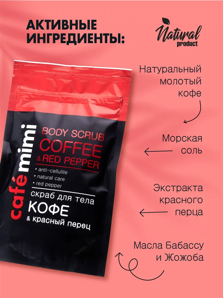 Скраб для тела Cafe Mimi Кофе и Красный перец 150г ДизайнСоап ООО