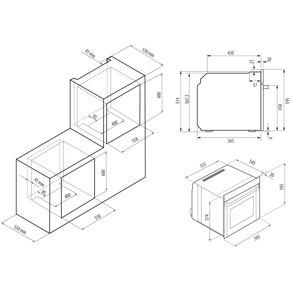 | Ниша для встраивания (В*Ш*Г), мм | 600*558*560 min |