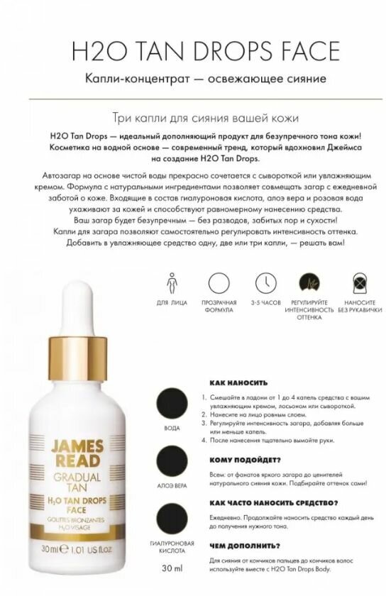 James Read Капли-концентрат освежающее сияние H2O Tan Drops Face 30 мл (James Read ) H2O TAN FACE DROPS