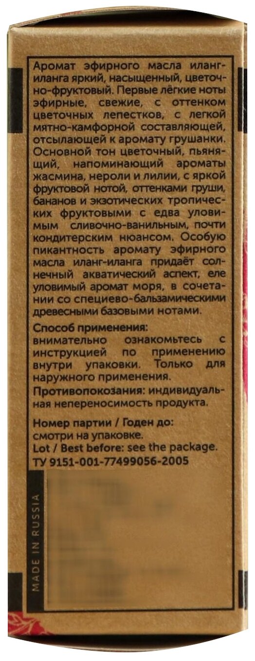 | Активные компоненты | 100% масло Иланг-Иланг. |
