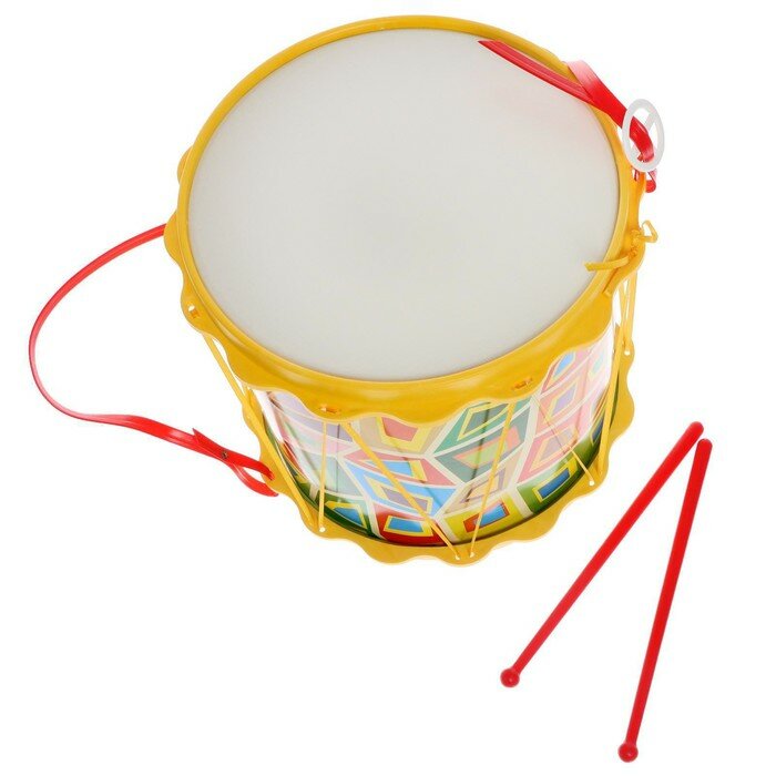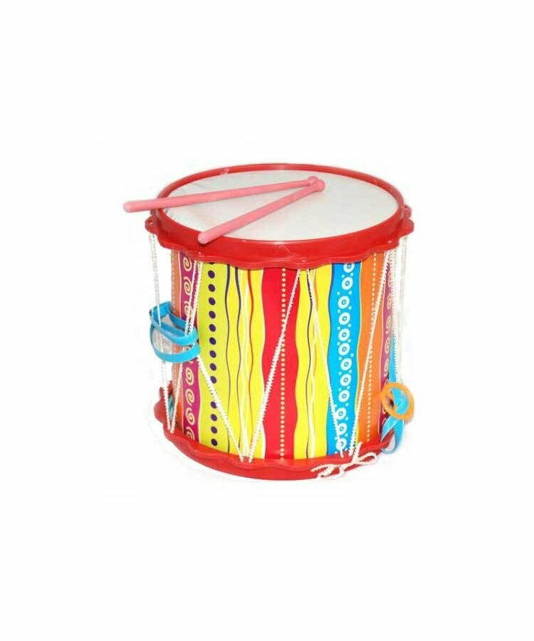 Красочный детский музыкальный инструмент, изготовленный в виде походного барабана, несомненно, поднимет ребенку настроение. В комплекте с барабаном можно найти 2 палочки. Благодаря ленточке, которая прикреплена к стенкам инструмента, его можно повесить на шею.