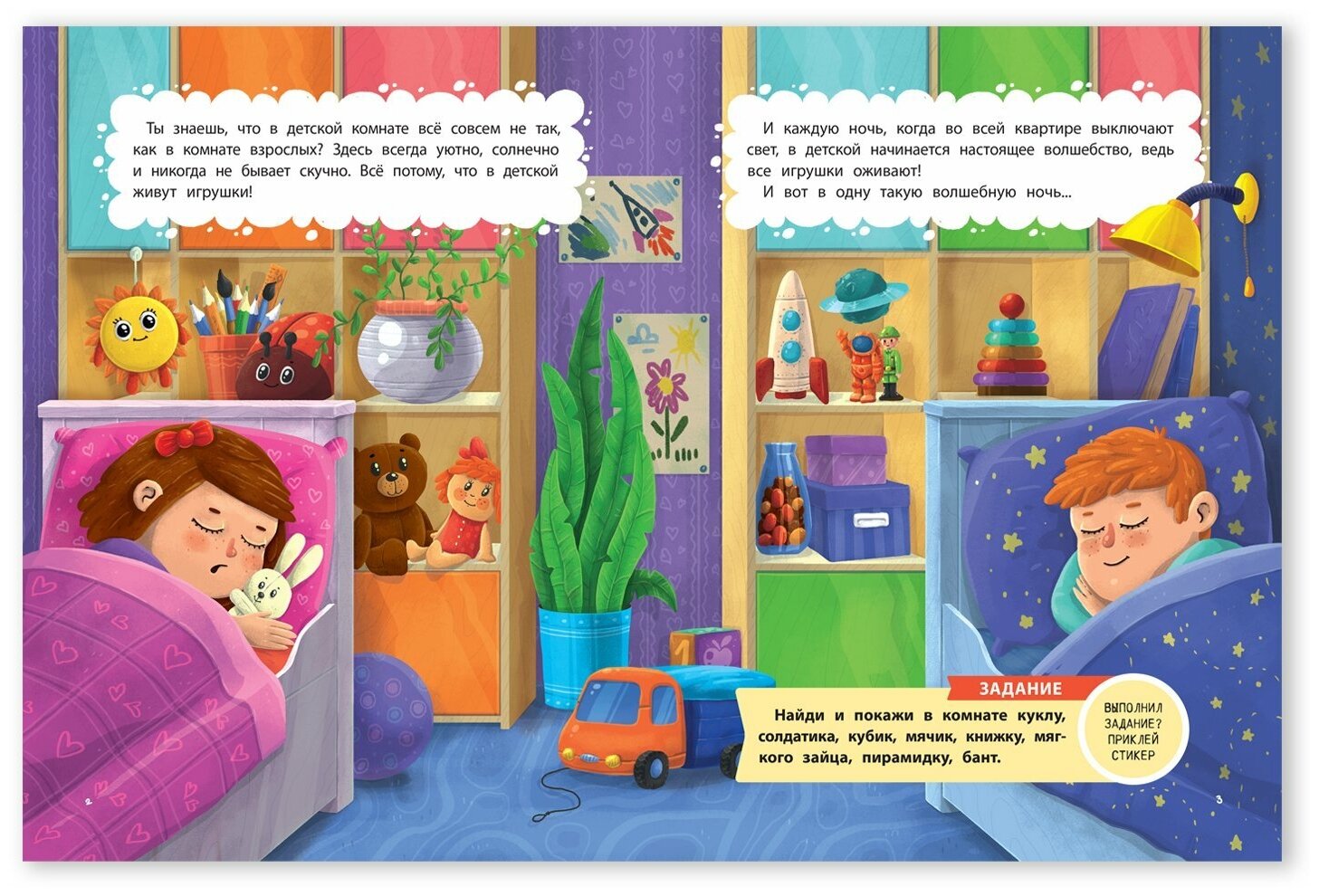 Серия "КвестБук для малышей" - прекрасный подарок всем, кто любит решать логические задачи, распутывать сложные лабиринты и отвечать на непростые вопросы. Любознательные почемучки, в руках у которых оказалась книга "Тайная жизнь игрушек, или Комнатный переполох", должны будут проявить нешуточную смекалку и удивительную находчивость. А всё потому, что читать и узнавать продолжение истории можно только при условии правильного выполнения заданий: найти отличия между картинками, ответить на вопросы, раскрасить картинку. Настоящий квест!