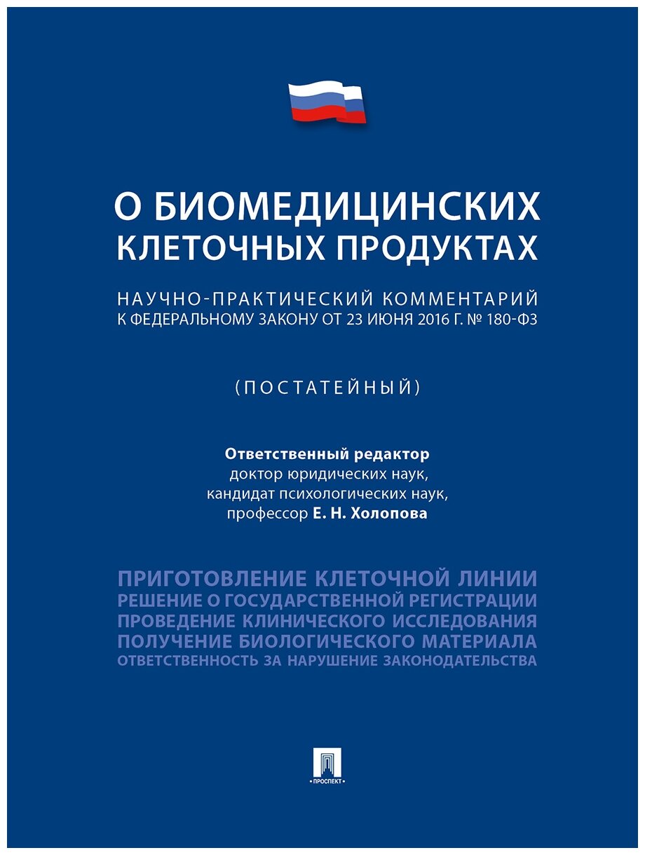 Научно-практический комментарий к Федеральному закону "О биомедицинских клеточных продуктах" (пост.) (Холопова Елена Николаевна, Белая Олеся Валерьевна, Вульф Мария Александровна); Проспект, 2020