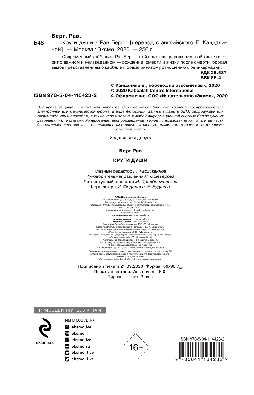 Книга: Круги Души (Рав Берг); Эксмо, 2020