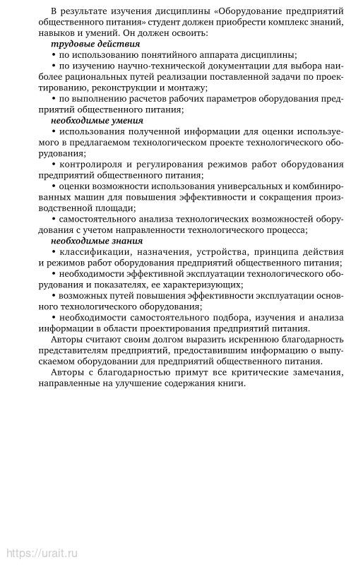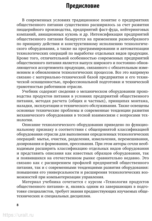 В учебнике содержатся материалы по курсу «Оборудование предприятий общественного питания». Приведены основные понятия о технологических машинах, даны сведения для изучения механического оборудования. Приводятконтрольные вопросы и задания для самостоятельной подготовки и библиогра- фический список. Соответствует актуальным требованиям Федерального государственного образовательного стандарта среднего профессионального образования и профессиональным требованиям. Для студентов, обучающихся по направлениям «Технология продукции и организации общественного питания».. Может быть полезен инженерно-техническим работникам отрасли.