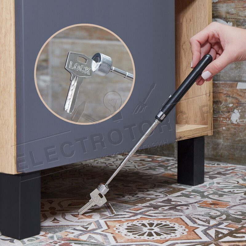 Телескопический магнит REXANT позволяет достать металлические предметы из труднодоступных мест.
