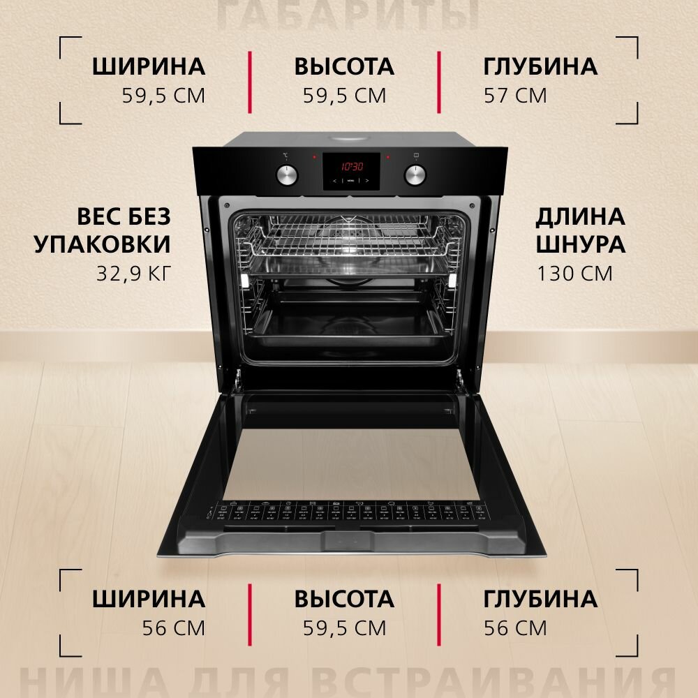 | Размеры (ШxГxВ) | 59.5 х 57.5 х 59.5 см; ниша 56 x 56 x 59.5 см |