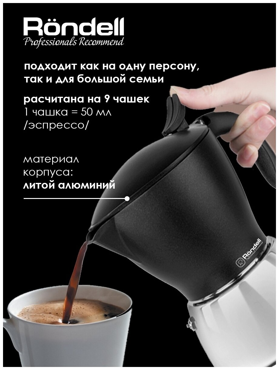 Многие итальянцы даже в наше время не спешат передавать почетное право приготовления кофе электрическим машинам и предпочитают делать это своими руками. Но не в турке, а с использованием гейзерных кофеварок, которые отлично справляются с поставленной задачей. Если вам также нравится этот способ, обратите внимание на гейзерную кофеварку Melange от Rondell.