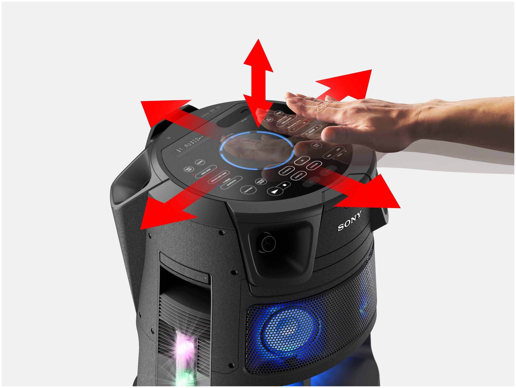 Почувствуйте ритм любимых треков в любом месте площадки благодаря всенаправленному клубному звуку Sony MHC-V73D, а функция всенаправленного клубного света поможет оживить танцпол. Подпевайте любимым трекам и танцуйте под них, где бы вы ни находились. Благодаря высокоэффективным высокочастотным, среднечастотным и расположенными под углом среднечастотным динамикам ваши вечеринки будут наполнены мощным, живым звуком, что порадует каждого любителя подобных мероприятий.