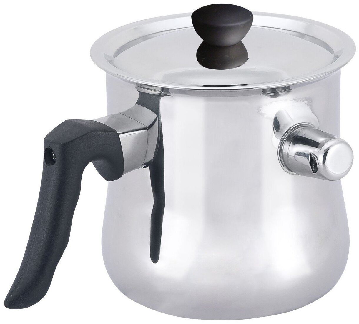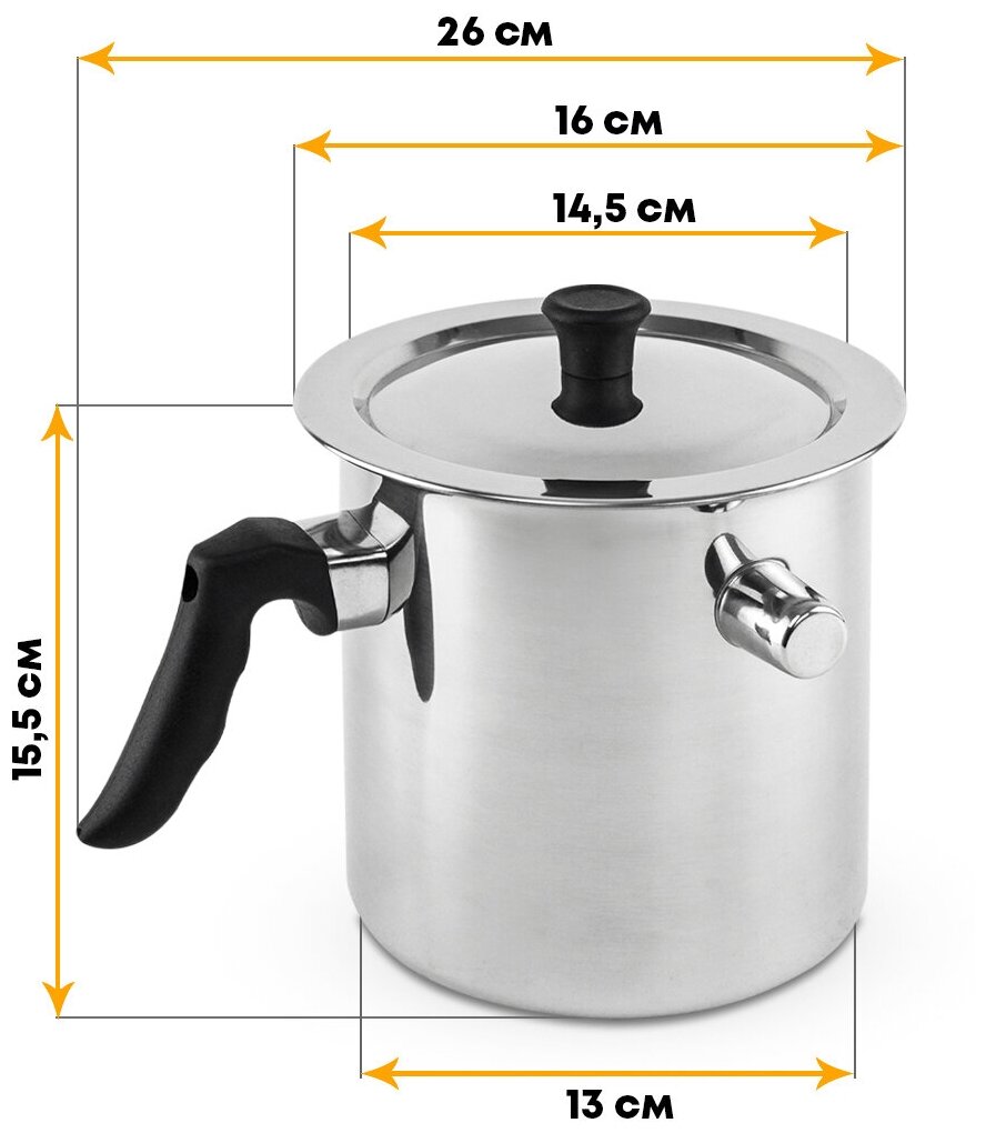 Понадобилась мне кастрюлька с водяной баней. Купил молочник объемом 1,5 литра. Сделан из нержавейки. Стенки не тонкие. На вид хорошее качество материала. Опробовал в деле и мне всё понравилось. Однако есть один минус - крышка молочника сидит не плотно, болтается около пяти миллиметров. Жену это очень нервирует. Возможно мне не повезло и эту кастрюльку укомплектовали крышкой от молочника на два литра, который по размерам немного больше.
