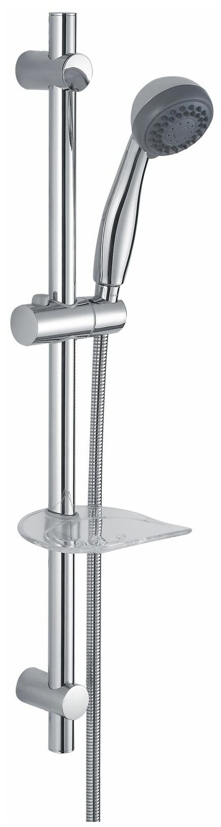 Назначение: для душа. Материал: пластик. Поверхность: хром. Лейка: есть. Штанга: есть. Мыльница: есть. Кронштейн для лейки: есть
