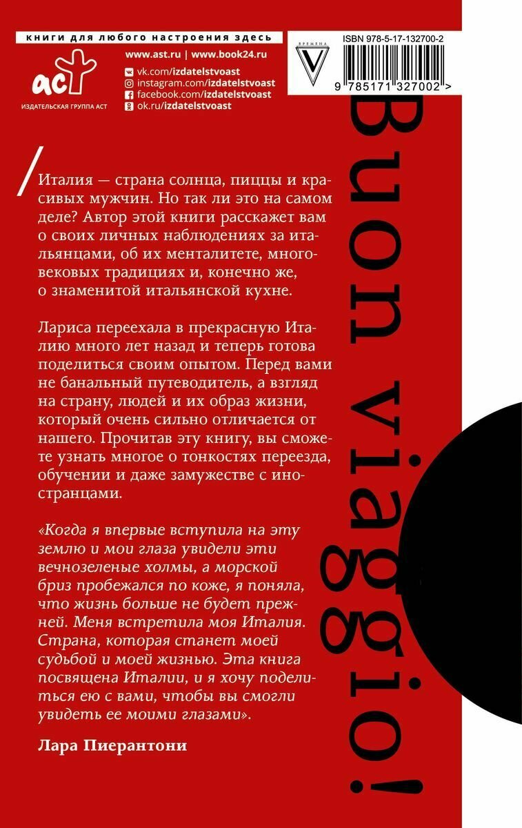 Лариса переехала в прекрасную Италию много лет назад и теперь готова поделиться с вами своим опытом. Перед вами не банальный путеводитель, а взгляд на страну, людей и их образ жизни, который очень сильно отличается от нашего. Прочитав эту книгу, вы сможете узнать многое о тонкостях переезда, обучении и даже замужестве с иностранцами.