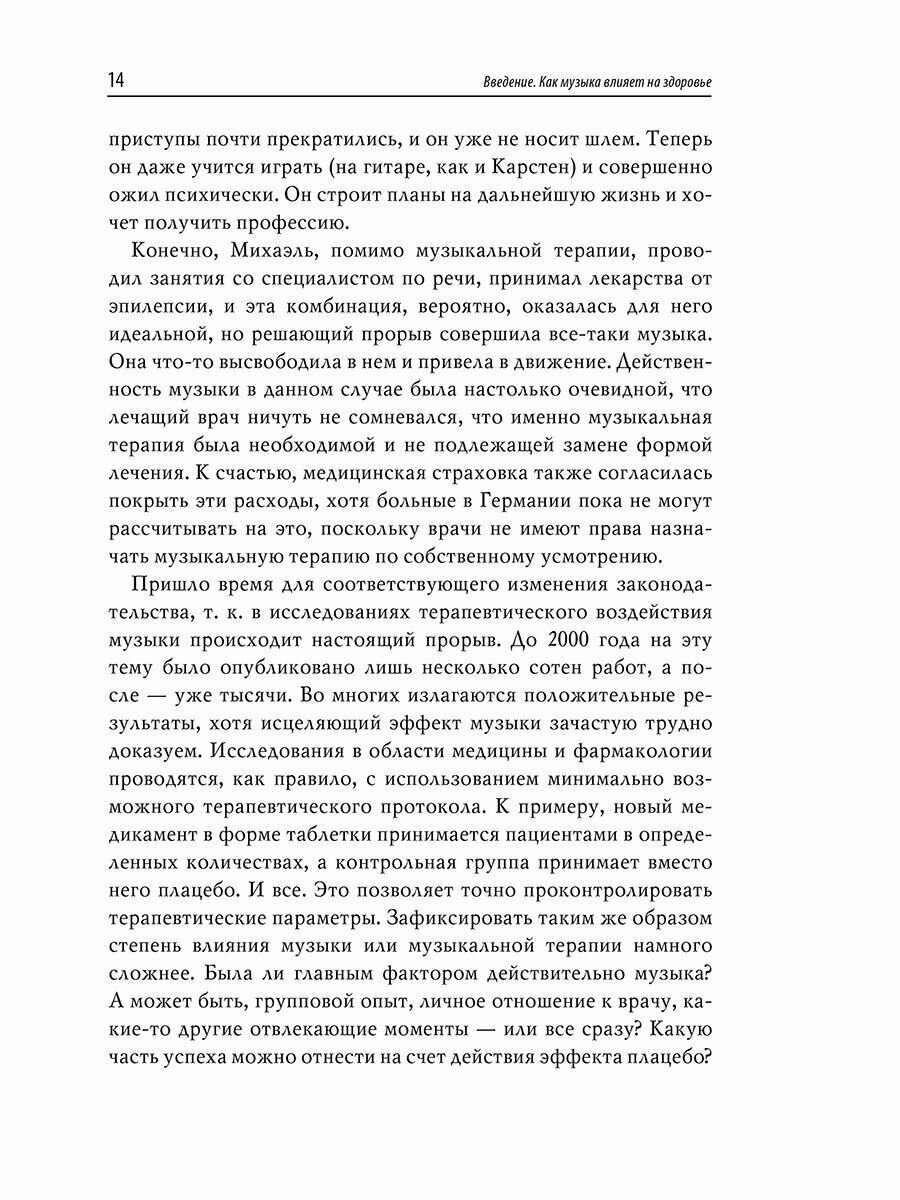 На основе многочисленных примеров из собственной исследовательской практики Штефан Кёльш демонстрирует нам, что музыка в любых ее проявлениях может способствовать профилактике и лечению самых разных заболеваний, став новым направлением в медицинской науке. Он дает читателю простые и выполнимые практические советы, которые помогут укрепить душевное здоровье и физическое состояние.
