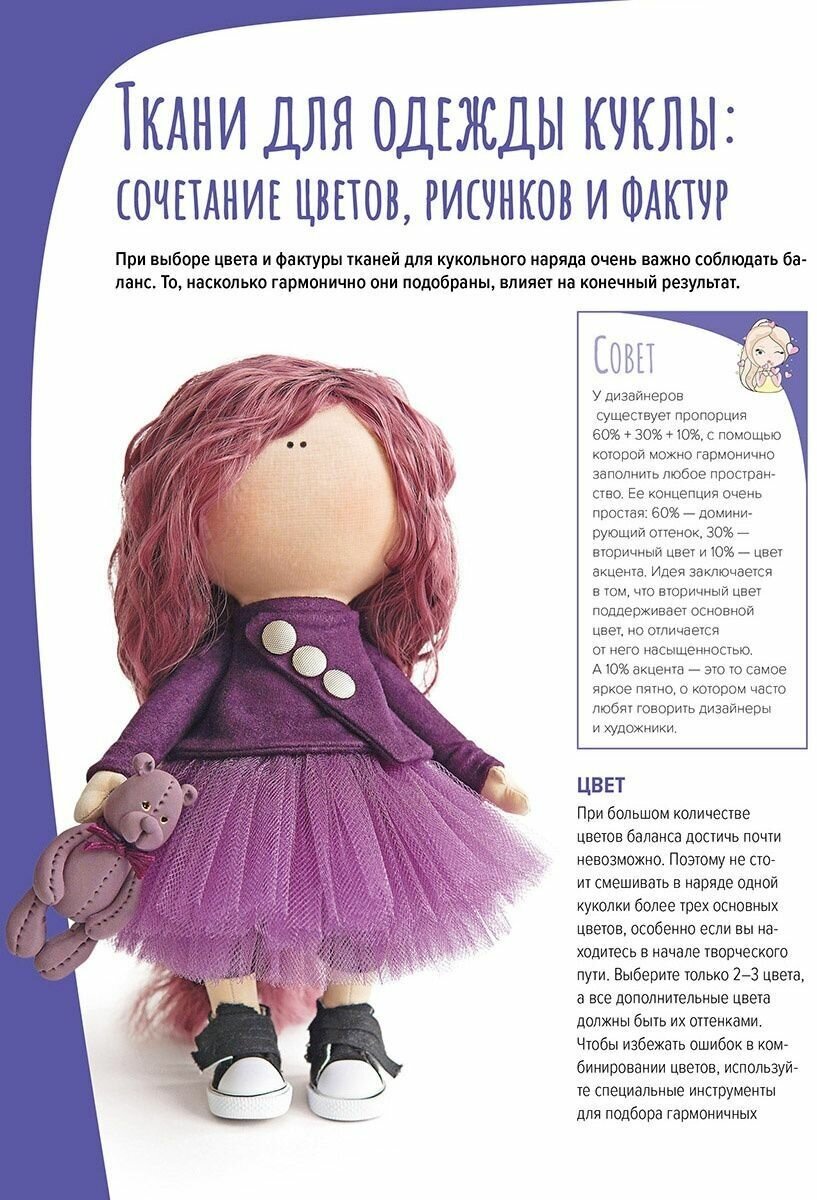 «Если вы мечтали сшить нечто особенное — время пришло», — утверждает автор книги Елена Гурылёва. Ее куклы безупречны, образы продуманы до мелочей, а выкройки и видеоуроки пользуются особым спросом. По сути, это не просто книга, а подробное руководство по пошиву очаровательной увесистой куколки ростом 27 см. Вы научитесь правильно набивать детали, освоите профессиональный способ создания круглой головы с красивой линией шеи, сошьете прелестное кукольное платье, жакет, шапочку и кеды. Не придется ничего додумывать и искать в Интернете — мастер дает ответы на все вопросы и предлагает выкройки в натуральную величину. К концу работы у вас в руках будет готовая кукла, как если бы посетили «живой» мастер-класс. Останется лишь отточить навыки — и можно делать кукол на продажу!