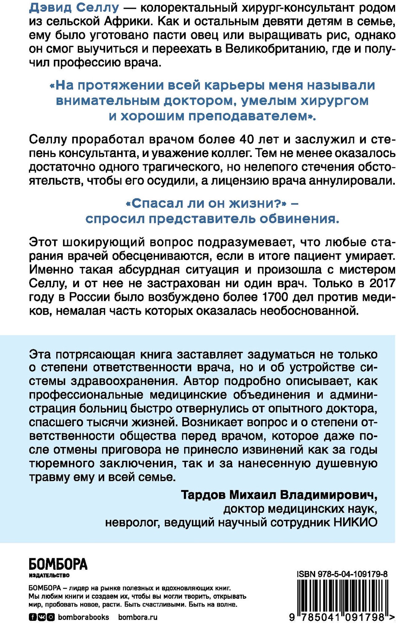 Незаслуженный позор, тюремное заключение, само противоестественное обвинение врача в убийстве перевернули жизнь мистера Селлу навсегда. Эта книга - его шокирующий, но, к сожалению, не уникальный опыт, переняв который, невозможно продолжать относиться к медицине как к сфере услуг.