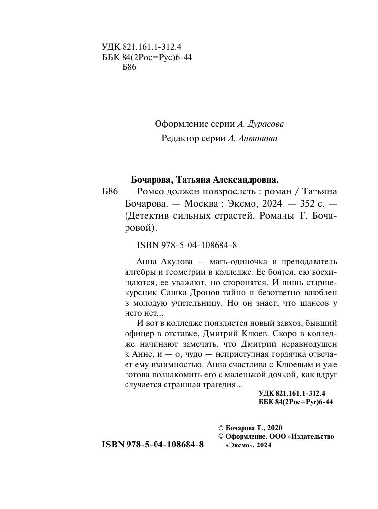 Книга: Ромео должен повзрослеть (Бочарова Татьяна Александровна); ООО "Издательство "Эксмо", 2020