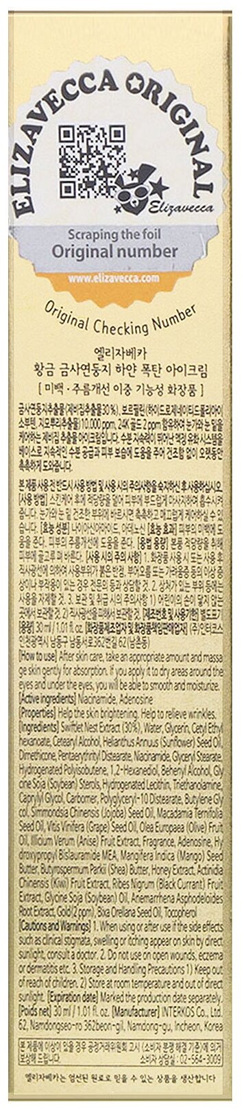 | Коллекция | Elizavecca Gold CF Nest White Bomb Eye Cream |