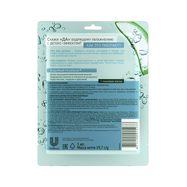 Увлажняющая тканевая маска для лица от Чистой линии эффективно борется с ощущением сухости и стянутости.