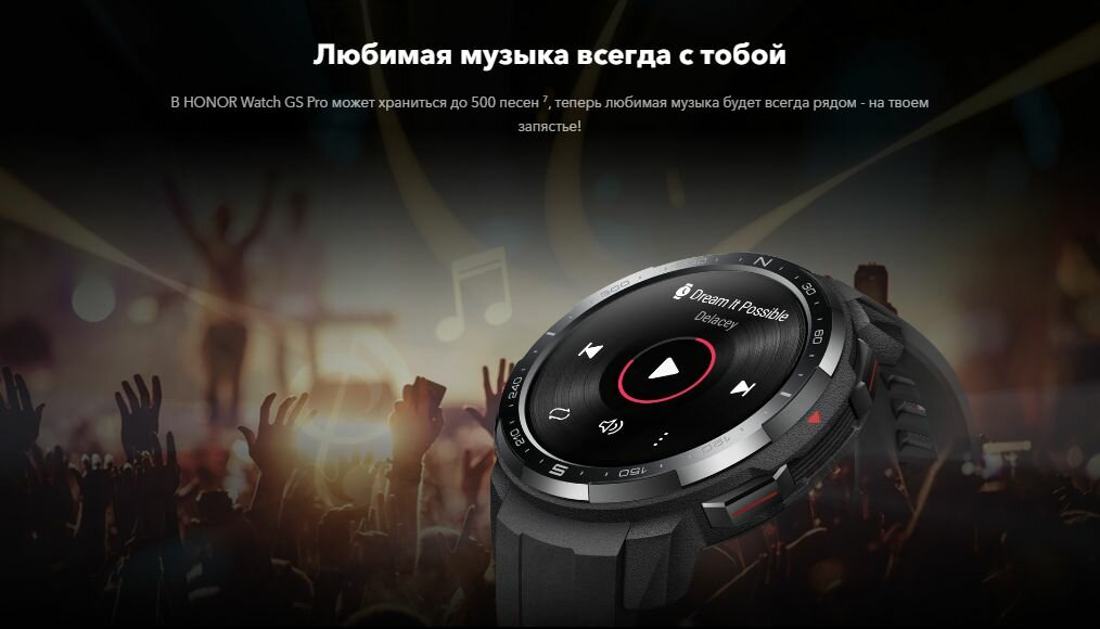 В HONOR Watch GS Pro может храниться до 500 песен, теперь ваша любимая музыка будет сопровождать все важные жизненные события.