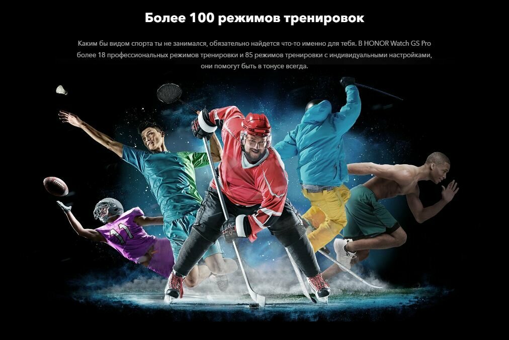Каким бы видом спорта вы не увлекались, вы обязательно найдете что-то для себя. В HONOR Watch GS Pro вы можете найти более 18 профессиональных режимов тренировки и 85 режимов тренировки с индивидуальными настройками, они помогут вам всегда быть в тонусе.