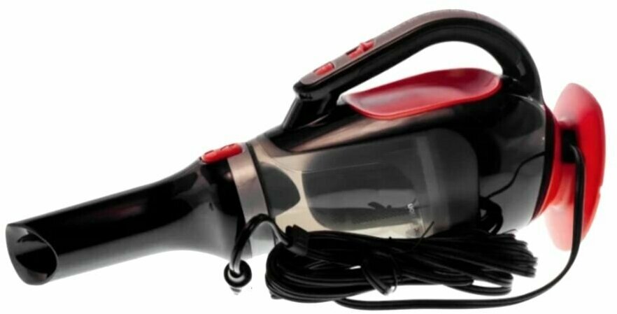 Пылесос оснащен контейнером для сбора мусора объемом 0,6 л. Устройство работает от прикуривателя, поэтому не требует подключения к сети. Есть индикатор включения. Дополнительно в комплект входят две насадки: щелевая и для очистки труднодоступных мест. Пылесос отличается следующими параметрами:
