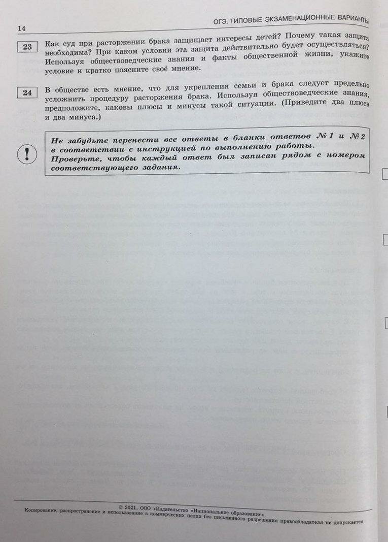 - 30 типовых экзаменационных вариантов, составленных в соответствии с проектом демоверсии КИМ ОГЭ по обществознанию 2021 года;