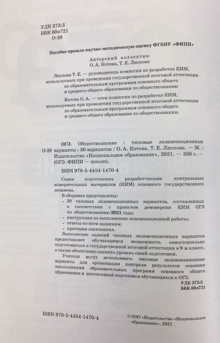ОГЭ 2021 Обществознание. Типовые экзаменационные варианты. 30 вариантов (Котова Ольга Алексеевна, Лискова Татьяна Евгеньевна); Национальное образование, 2020