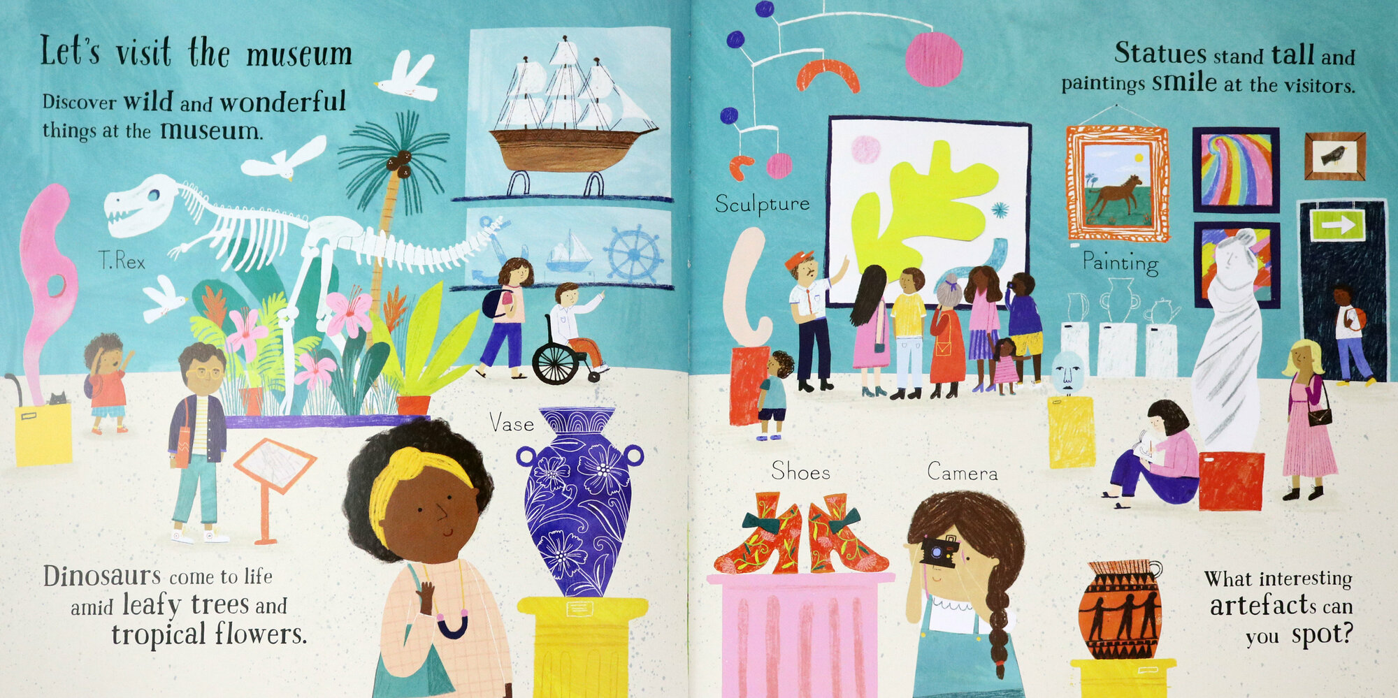 Each spread uncovers an exciting new city scene. Take a bus tour, spot cranes building skyscrapers and watch as fountains throw water into the air. Have a picnic in the park, hear the ducks quack and watch the dogs prance and play. Discover wild and wonderful things at the museum plus lots more.