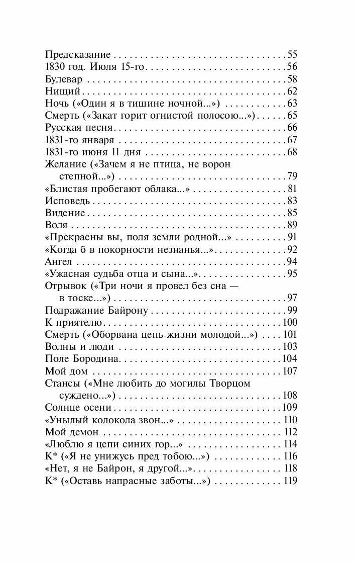 Помимо стихотворений в издание вошли поэмы, среди которых романтические и пронизанные атмосферой Кавказа «Демон» и «Мцыри», а также «Песня про царя Ивана Васильевича, молодого опричника и удалого купца Калашникова».?