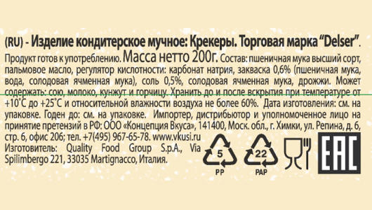 Сервис сравнения цен СкидкаГИД предлагает сравнить цены на товар «Крекер Delser Non Salat без соли 200г Quality Food Group S.p.A»