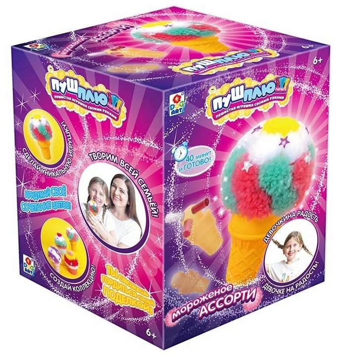 1toy T18992 ПУШ-ПЛЮШ Набор для творчества "Мороженое Ассорти"