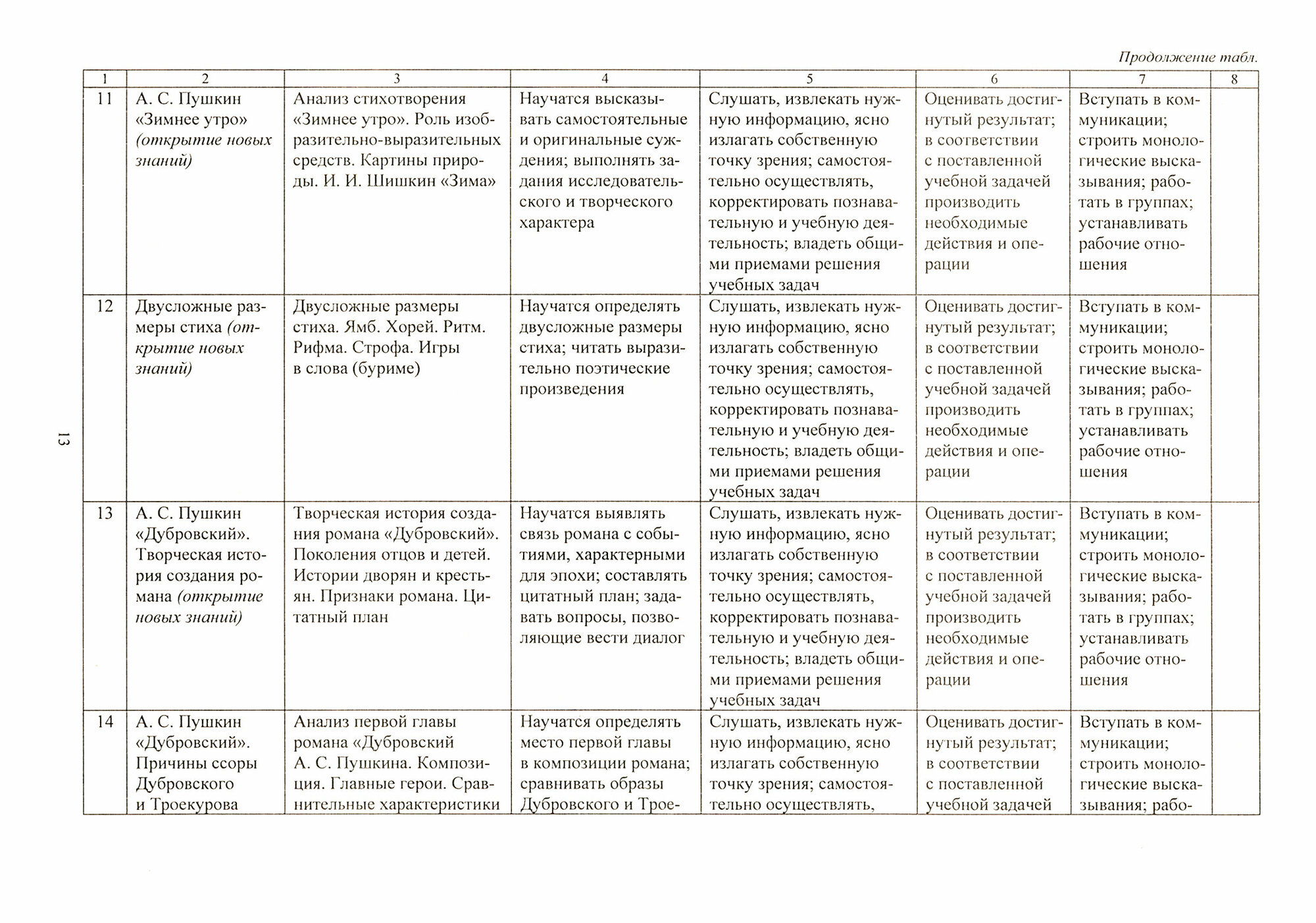 Рабочая программа включает развернутое календарно-тематическое планирование системы уроков и педагогических средств, с помощью которых формируются универсальные учебные действия, достигаются планируемые результаты освоения образовательной программы; учебно-методическое обеспечение. Технологические карты уроков, как современные формы планирования педагогического взаимодействия между учителем и учениками, способствуют развитию познавательной активности, коммуникативных умений, предлагают учащимся осуществлять регулятивно-оценочные функции, формулировать учебно-практические задачи и находить пути их решения. Особое внимание уделено анализу художественных текстов с целью формирования знаний и умений исследовательского характера, развития творческой и деловой активности. Результат учебно-познавательной деятельности - создание внешнего продукта (презентации, мультипликационного фильма, виртуальной экскурсии, доклада и пр.). Использование технологических карт оптимизирует процесс формирования и развития личности школьника на уроке.