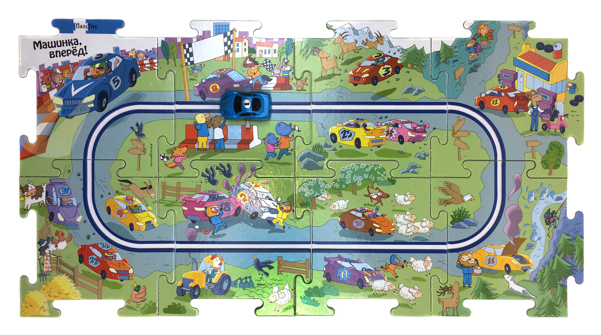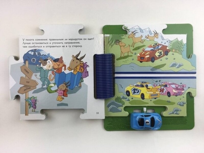 Какая интересная жизнь у автогонщиков! Посмотреть на их соревнования приходит множество людей. Автогонщики не только умеют хорошо водить машину, но и прекрасно разбираются в картах — никогда не заблудятся в пути. Хочешь выиграть в автогонках? Собери игровое поле, поставь машинку на трек — на старт, внимание, марш!Какая интересная жизнь у автогонщиков! Посмотреть на их соревнования приходит множество людей. Автогонщики не только умеют хорошо водить машину, но и прекрасно разбираются в картах — никогда не заблудятся в пути. Хочешь выиграть в автогонках? Собери игровое поле, поставь машинку на трек — на старт, внимание, марш!
