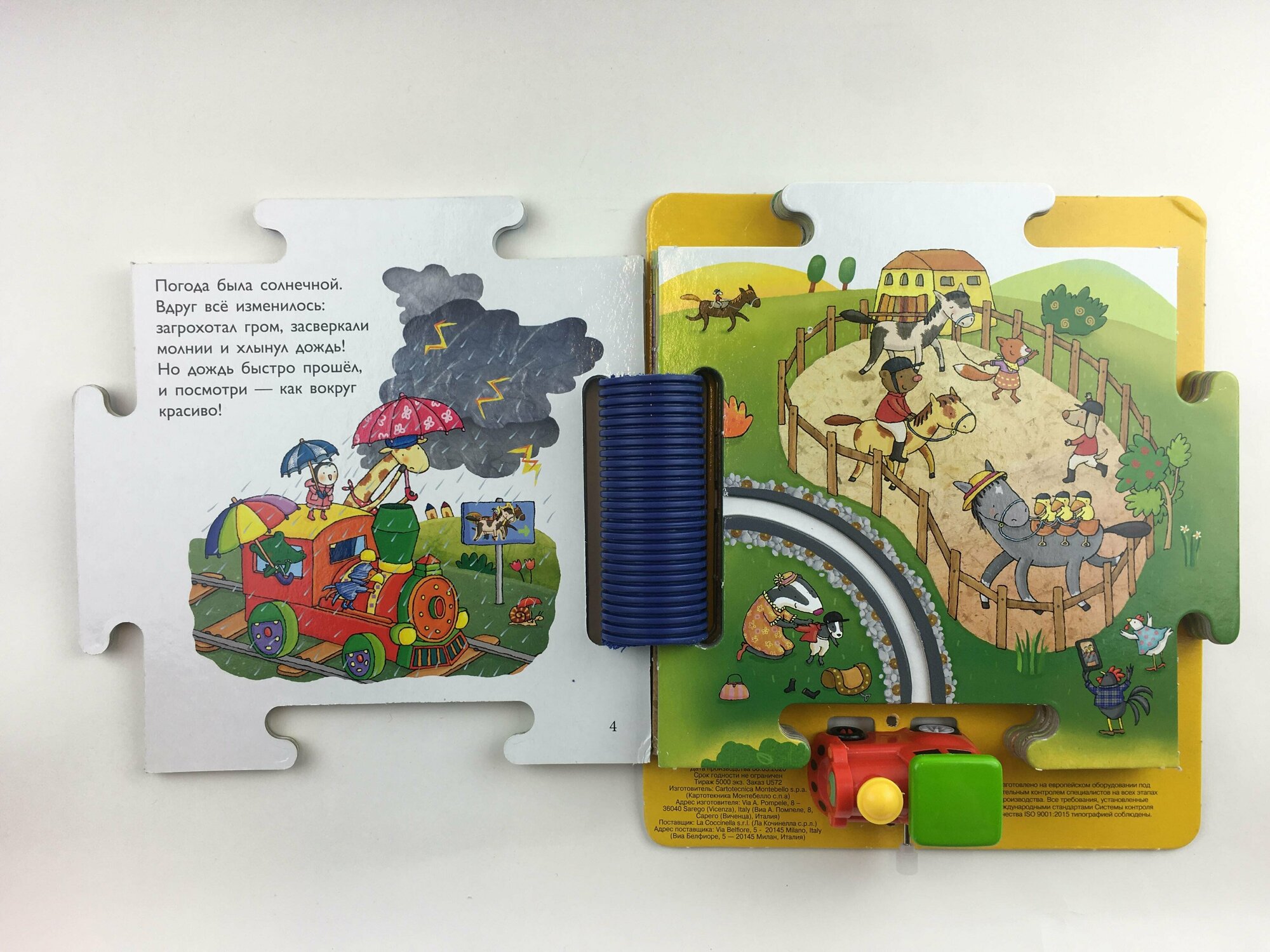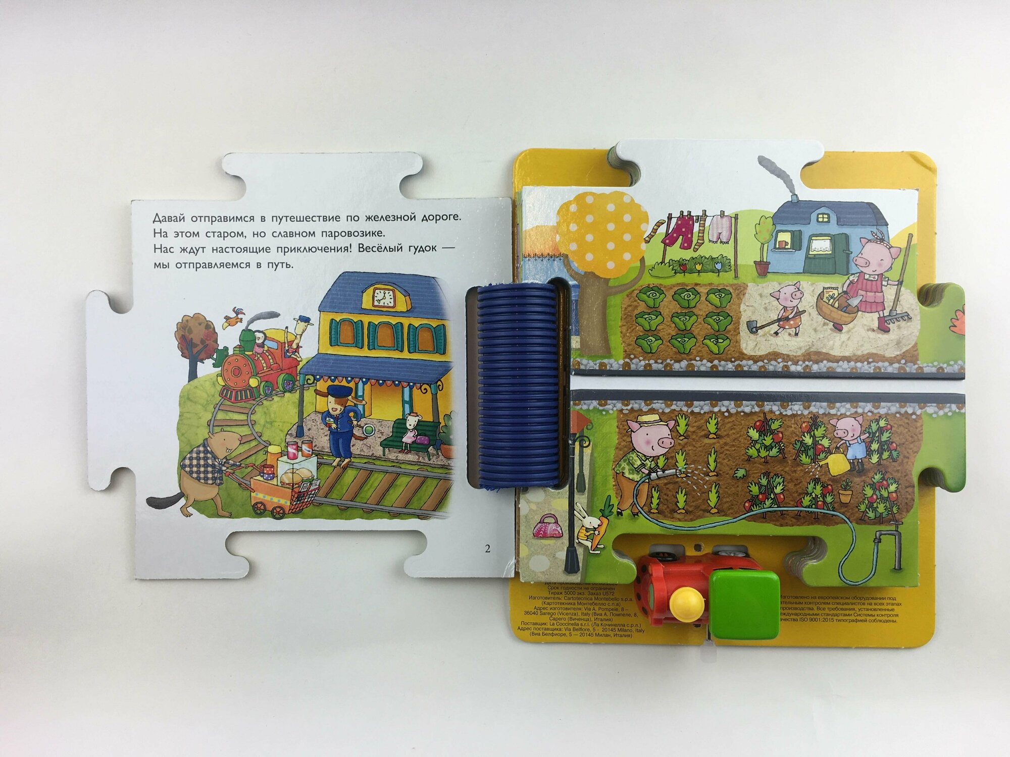 Весело путешествовать по железной дороге! За окном мелькают города, деревни, поля и леса. А за безопасность пассажиров отвечает машинист. Он легко проведёт состав по железнодорожному мосту, вовремя пропустит встречный поезд и благополучно доставит пассажиров на конечную станцию. Хочешь стать машинистом? Собери игровое поле, поставь паровозик на трек — и отправляйся в путь!