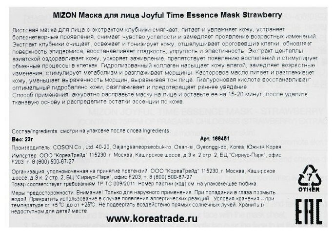 | Коллекция | Mizon Joyful Time Essence Mask Strawberry |