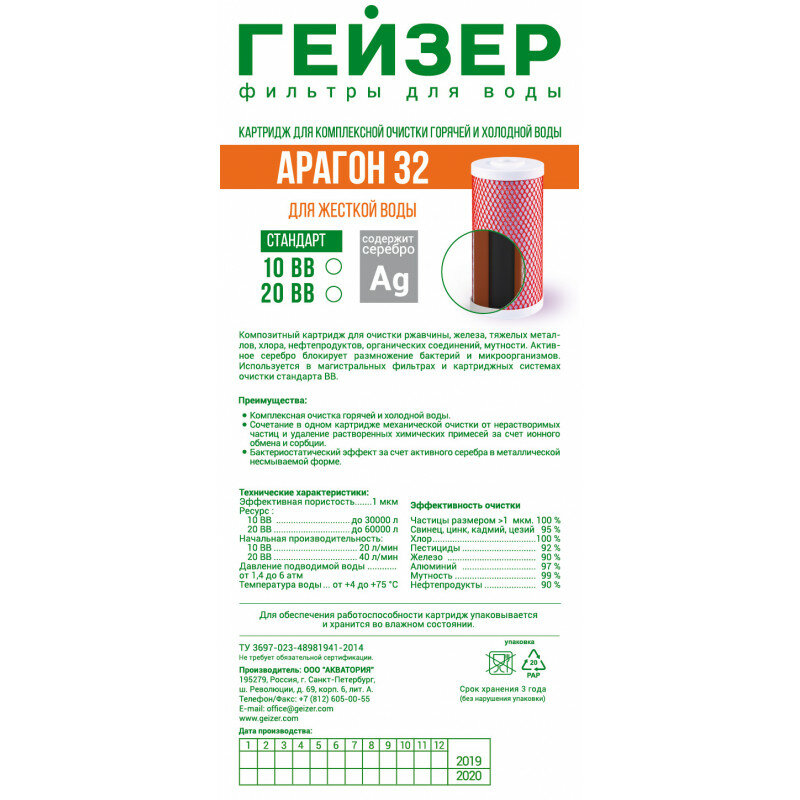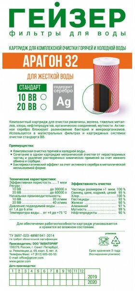 Картридж ГЕЙЗЕР Арагон-32 10BB 1шт 30077
